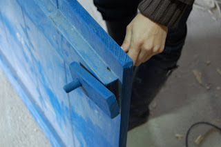 (a aldraba da nossa porta é uma antiga ferradura encontrada lá em casa + peças de uma antiga carroça + peças "extra" da actual carrinhola do sr. AC. Entretanto a aldraba já está concluída e tratada com Hammerite por causa de ferrugem.)